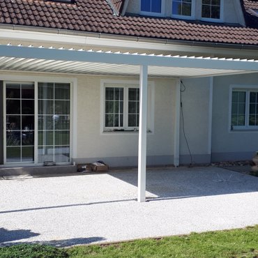 Aluminum slat can be oriented from 0° to 130°, of course there is a seal and slant of the slats for the controlled drainage of water. Up to a width of 4000 mm, the load capacity of the slats is up to 116 kg/m2. From a width of 4000 mm, the load capacity of the slats is up to 90 kg/m2. Shading components and LED lighting can be integrated into the pergola.