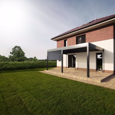 Self-supporting ARTOSI bioclimatic pergola with innovative and clean design from the development department of ISOTRA. The basic dimensions of the product - width 4,5 m and slide-out/extension up to 7 m - meet the strict requirements for the current comfort.