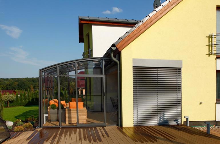 The slats of the Cetta 80 are C-shaped and 80 mm wide. Their smooth, simple design will complement the look of most family houses. The Cetta even offers two solutions if you need to reduce the roll-up height – the Slim system packs the slat with alternating side overlap, while the Flexi system attains the reduced roll-up height by using slats without longitudinal bends.