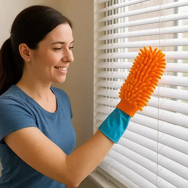 - Antistatic glove - put it on your hand and with one stroke you can wipe multiple slats at once.