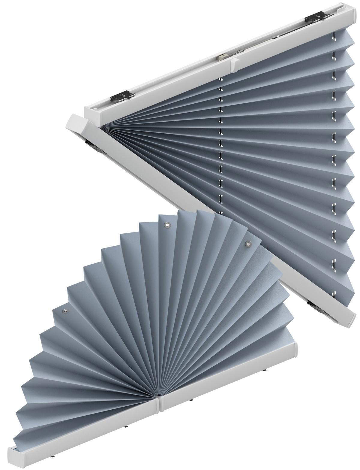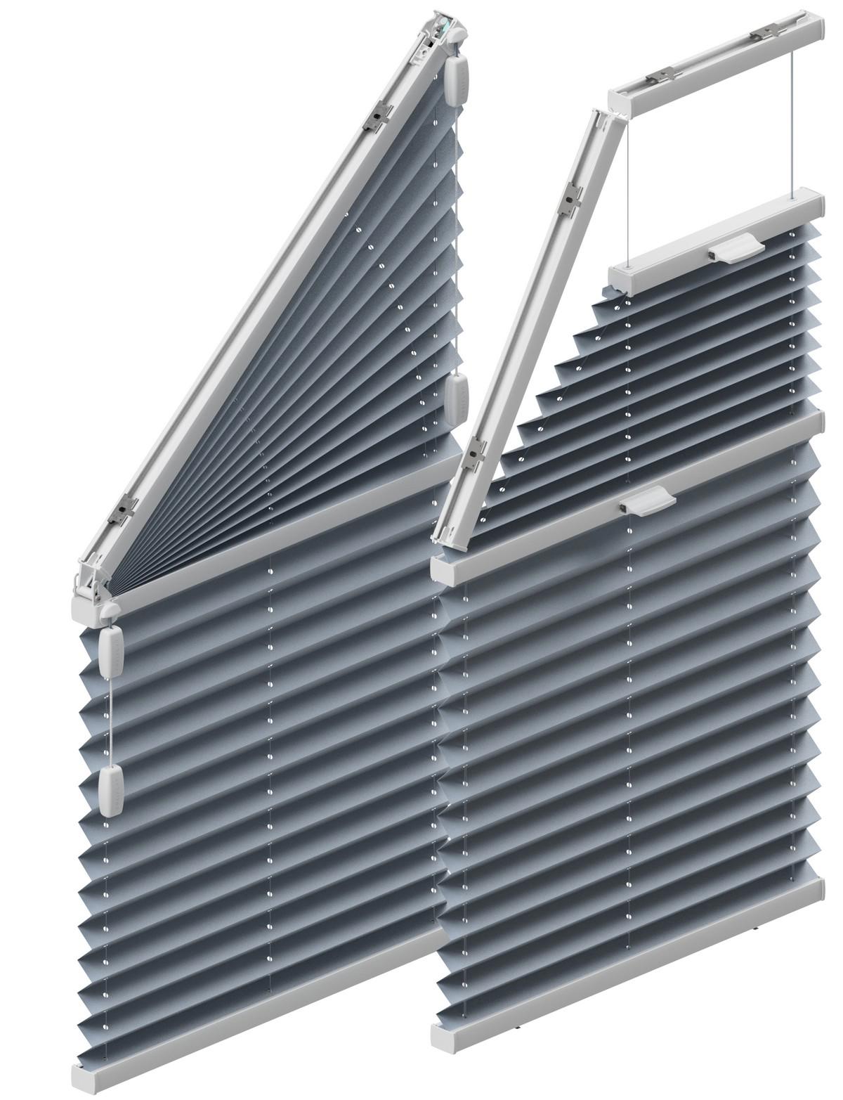The great advantage of this product is its variability of control and attachment, where there is no need to drill or screw into the wall or window, but the profile can be glued directly to the window pane. You can choose multiple fabrics that you can alternate, these Plisse blinds can be pulled classically from top to bottom, but also the other way around or apart or rolled together, etc. It can also be adapted to very atypical window shapes.