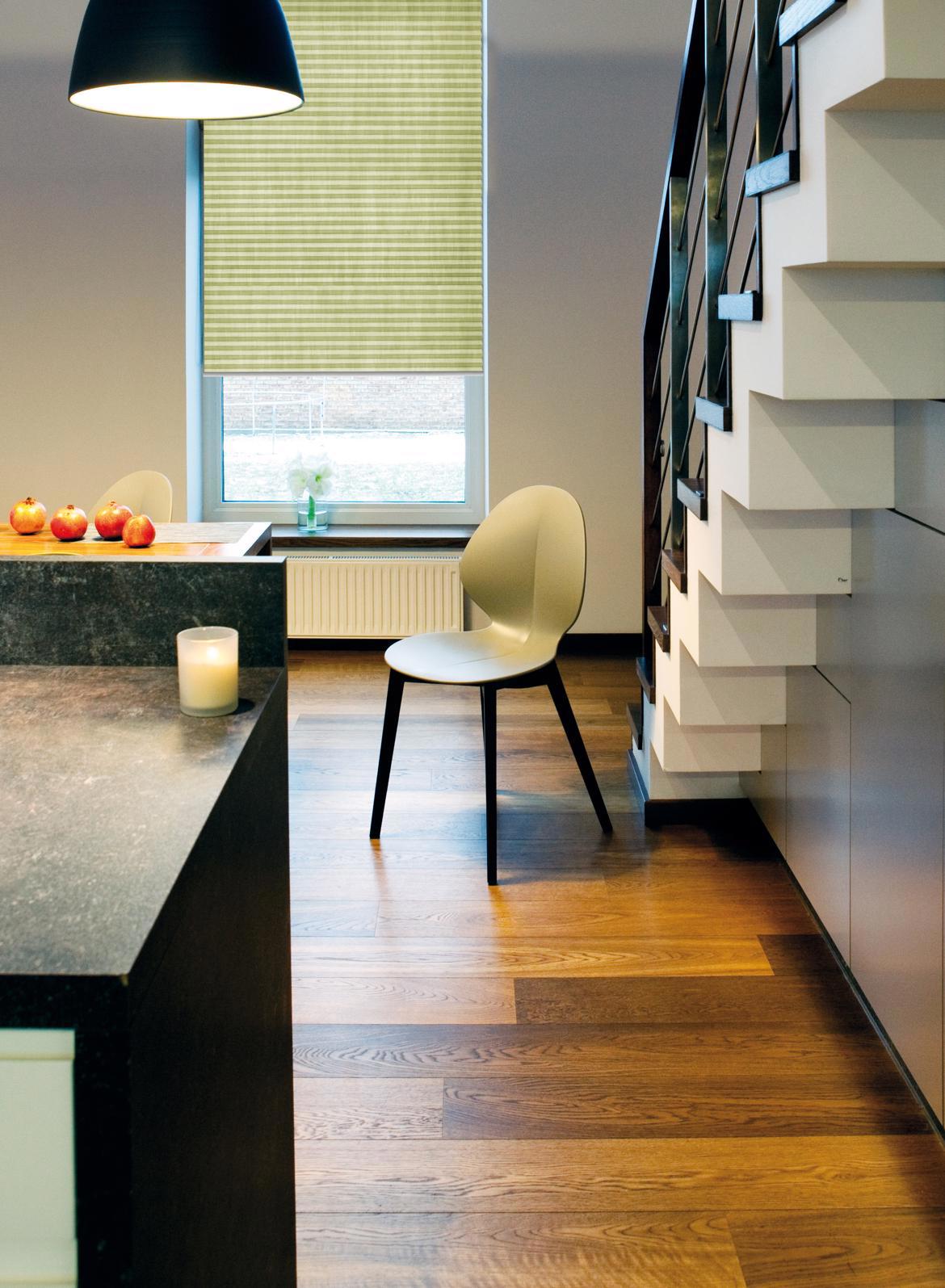 The scorching sun can make both your workday and time at home with small children uncomfortable. Light and thermal comfort can be maintained with semi-transparent daytime shading that allows sunlight in but ensures there isn’t too much of it. Pleated blinds are ideal for this purpose, as are day-and-night roller blinds.